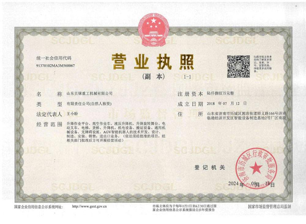 山東貝錸重工機械有限公司,位于泉城濟南市,公司注冊資金6800萬元,是一家專注于液壓升降機,液壓貨梯,翻轉機械,旋轉機械,各種垂直裝配工裝等產品研發,設計,生產,銷售,安裝一體化的創新型企業,多年來全心致力于為客戶提供更高效安全的,升降裝配解決方案,憑借優良的產品獲得客戶的一直認可。